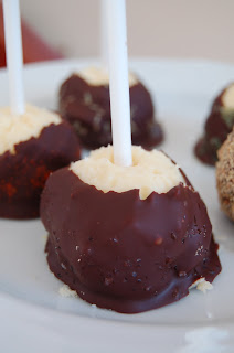 The only issue I had while making them was the freezer space. I did not have enough space to freeze all 3o pops before dipping them in chocolate and other yummy items so I just had to hope they would get cold enough in the fridge and work really fast. So in the end they didn't turn out a pretty as I'd like, but the taste is incredible. I thought the cheesecake was so creamy and good that when paired with a dark chocolate coating and sea salt I thought I'd died and gone to heaven.